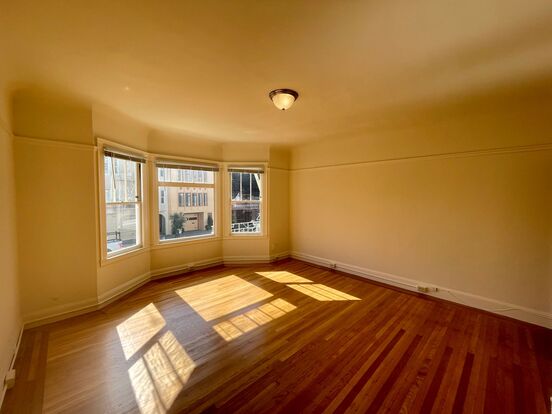 The apartment boasts hardwood floors throughout, a spacious studio space, large walk-in-closet, eat-in kitchen w/ gas stove and high ceilings. This apartment radiates San Francisco Charm! Schedule a tour today!!