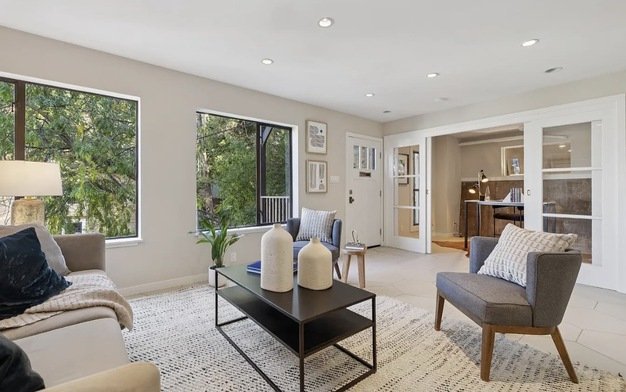 Surrounded by an open hillside with mature trees and shrubs, the property offers a rare sense of tranquility in an urban setting. A charming stairwell adjacent to the building connects Carolina and 20th Streets, providing easy access to neighborhood cafs, restaurants, and scenic overlooks.