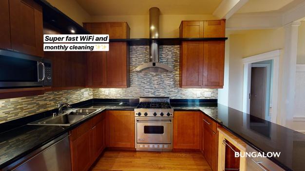 This home features furnished common spaces, in-unit laundry, and kitchen essentials including a dishwasher. It also provides high-speed WiFi and monthly professional cleaning services.