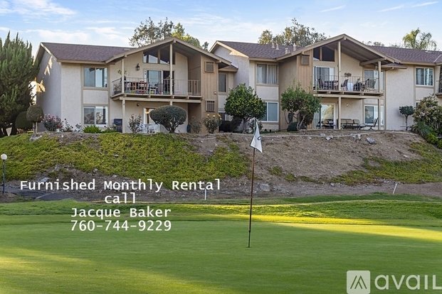Furnished Condo for Rent month to month. Available now thru April 20, 2025. month to month. Beautiful 2 BR, 2 Ba plus office, lower level on St Marks Golf Club. Fabulous Views. Comfortable furnishings, including linens, kitchenware, wifi, Washer and dryer, AC, utilities, all the comforts of home while you visit. One small dog considered with pet cleaning fee. Parking for two vehicles, one reserved covered carport, the other open parking spaces. There is a community pool, and spa and courts about a block away. Lake San Marcos is a special lakeside community with boating and fishing, two golf courses, two restaurants, and other shopping nearby. We are located about 7 miles east of world famous Carlsbad beaches and the Pacific Ocean. The weather is mild and sunny year round. You will love this home. Please call me directly at the number on the photo. I have my own application as well. Jacque Baker, Property Manager, 760-744-9229