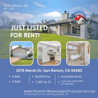 2579 Marsh Dr is asking 1% more than the average 4 bedroom apartment in San Ramon.