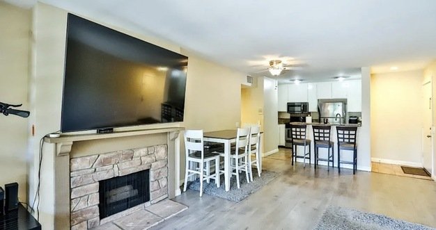 Welcome to this beautifully updated ground-level 1-bedroom, 1-bathroom condo in the desirable St. Albans community. Step into an open-concept living area featuring a cozy fireplace and oversized sliding doors that open to your own private patioperfect for morning coffee or a relaxing glass of wine in the evening. The kitchen boasts granite countertops, stainless steel appliances, and a convenient breakfast bar for casual dining. The spacious bedroom includes a walk-in closet and direct access to the large full bathroom. Additional highlights include in-unit laundry for added convenience. All appliances are included for a truly move-in ready experience!