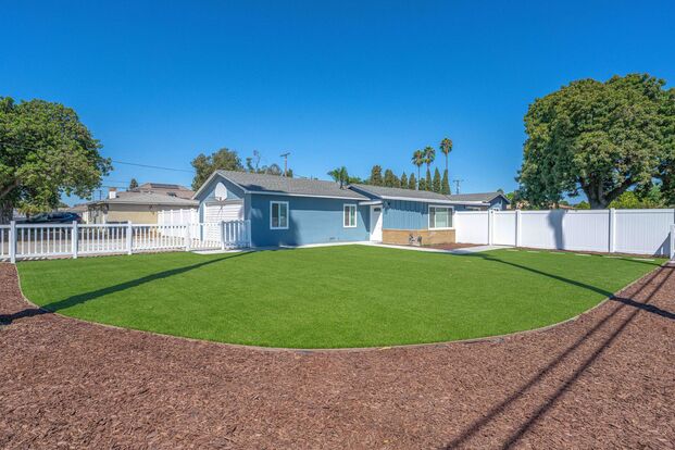 Enjoy the curb appeal from this white picket fence home! This fully remodeled 4bd, 1ba home sits on a lot with over 10k square feet of enclosed yard space, which is perfect for those family outdoor gatherings. Upon entry you will appreciate the new paint and modern, hard surface flooring throughout, updated kitchen with Shaker cabinets and new countertops, with stainless steel stove and dishwasher included. Stay comfortable in all temperatures with central heat, AC, and ceiling fans. New bathroom with shower over tub and sleek slate tile flooring. The 4th bedroom would make a great office or bonus room with direct access from the sliding door to the outdoor space. The 2-car garage features washer/dryer hookups, overhead storage and additional driveway parking which can accommodate oversized vehicles. With low maintenance landscaping on an oversized lot, the possibilities are endless for a true indoor/outdoor living experience that can be created from this quaint California coastal cottage.