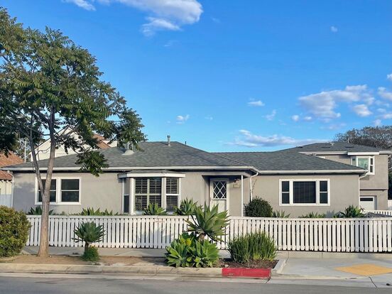 Spacious single level remodeled home with wood floors and bright open floor plan. The large Living room has a sunny bay window and wood burning fireplace. The bright kitchen has its own bay window perfect for a small table and informal eating area, lots of counter and cabinet space including pantry, and there is a separate formal dining room as well. The floor plan is private with 2 bedroom one bath on one side and a separate bedroom bath on the other. The front yard is fenced and there is a roomy patio in back and a large yard with planter beds and Tuff Shed storage shed for extra storage. Laundry hookups are in kitchen, and there is a detached 2 car garage. 1 Dog considered, no smokers please. $5200 month plus deposit. Please contact agent for more info or appointment to view this property.
