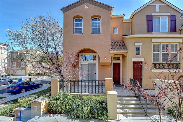 Nestled in a quiet, private pocket of Rivermark, this desirable corner townhome follows the highly functional Park Plan III. The living room features a fireplace, soaring ceilings, and private patio, overlooked by a flexible family/dining area. Stainless appliances complete a kitchen that opens to a separate living/dining space. All three bedrooms are tucked away upstairs, including a large master suite with walk-in closet and luxury bath with dual vanities, soaking tub, and separate shower. Enjoy a convenient upper-level laundry, custom paint colors, and an attached two-car garage with crawlspace storage. Stroll to trails, parks, the community pool, and Don Callejon School. Just blocks away await shopping, dining, Safeway, coffee, and more at Rivermark Village. Excellent proximity to Oracle, Intel, Google, Levi’s Stadium, and more!