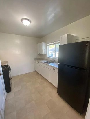 Recently renovated unit in a quaint complex of six units. Spacious living room and dining room areas with laminate flooring. The bathroom has a shower over tub. Carpeted hallway and bedroom. Your own Large front yard and a large common area behind the unit.
