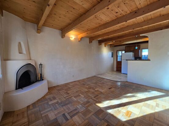 Discover the charm of Santa Fe living in this inviting two-bedroom, one-bathroom home for lease. Just moments from the Plaza, this residence features wood and tile flooring, a cozy kiva fireplace, and gas forced-air heating. The kitchen includes a dishwasher, while the in-unit washer/dryer combo adds convenience. Enjoy a private back patio, a fenced yard, and gated entry for added security. With two parking spaces and easy access to top restaurants, shopping, and galleries, this home blends comfort and location. ADA assistive animals only. Water, sewer and trash utilities are $50/month. Don’t miss this opportunity to experience Santa Fe’s unique charm!