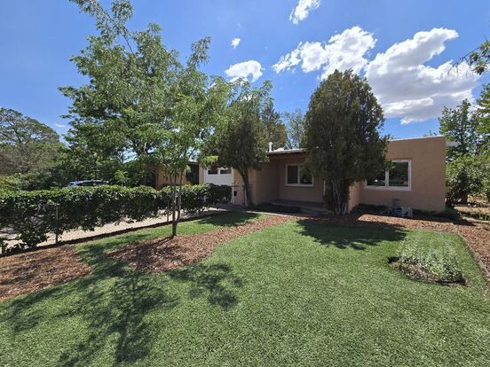 Discover comfort and Southwest charm in this updated 3-bedroom, 1.5-bath home in the heart of Santa Fe. With 1,134 square feet of thoughtfully designed living space, this home features beautiful wood flooring throughout, updated fixtures and appliances, and both gas forced-air heating and central A/C for year-round comfort. Enjoy outdoor living in the large, landscaped backyard, complete with a brick patio perfect for relaxing or entertaining. The walled yard offers privacy and space for pets or gardening. Additional features include off-street parking and a finished one-car garage with built-in storage shelves (not set up for vehicle parking). Located just minutes from downtown, this charming home blends modern convenience with classic Santa Fe character—an ideal rental in one of New Mexico’s most desirable locations. Brant Goodman, Qualifying Broker