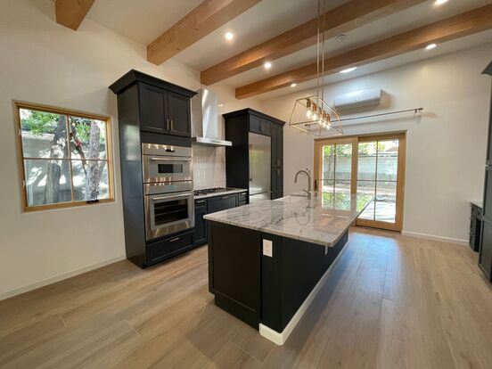 Nestled off the renowned Canyon Road, this stunning two-bedroom, two-bathroom home offers the perfect blend of historic charm and modern luxury. The open-concept living room and kitchen boast high ceilings with vigas, a cozy gas fireplace, and sleek tile flooring, creating a warm and inviting atmosphere. The updated kitchen features modern appliances, including a gas stove/range, oven, dishwasher, and refrigerator. Both bathrooms have been tastefully remodeled with high-end fixtures, while the master bath impresses with a walk-in shower, a beautiful porcelain tub, and double sinks. Enjoy year-round comfort with in-floor radiant heating and mini-splits for cooling. Outside, the private enclosed yard provides a serene retreat, ideal for relaxation or entertaining. Additional highlights include a one-car garage for convenience. Situated in a prime location near Santa Fe’s famed art galleries and attractions, this exquisite home offers a rare opportunity to experience the best of Canyon Road living with contemporary comforts.