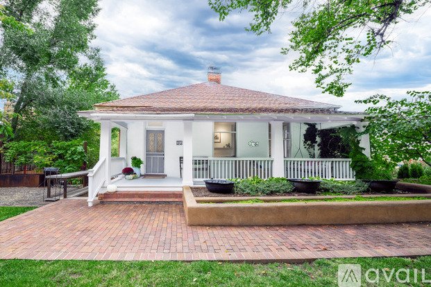 Gorgeous yard with fruit trees and roses, and pretty much anything you can think of, plenty of room for dogs and/or gardening. Completely private, surrounded by a tall adobe wall. Lounge on the front porch in the swinging chair or cuddle up by the fire inside.