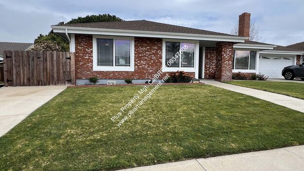 This Single Story Orcutt Home Is Centrally Located With Easy Access to HWY 1 For A Quick Drive to VSFB. Close to Schools, Shopping and Restaurants. Vinyl Plank and Carpet Flooring Throughout with Carpet in the Living Room/Bedrooms. Ceiling Fans in Bedrooms. Large Great Room with Electric Fireplace. Living Room with Wood Burning Fireplace. Kitchen Equipped with Gas Stove Top, Oven, Dishwasher, and Refrigerator. Washer/Dryer Hookups. Soft Water System for Tenant to Maintain. Reverse Osmosis Maintained by Owner. New Redwood Fence All Around. Attached 2 Car Garage and a Second 2 car Garage with Workout Room at Back of Lot Behind Front Garage. Concrete Driveway Access to Backyard from West Side of House. Large Backyard with Gardener. Solar Panels (Tenant pays for Electricity Usage) Tenant Responsible for all Utilities. Pet Considered with Additional $50 Pet Rent.