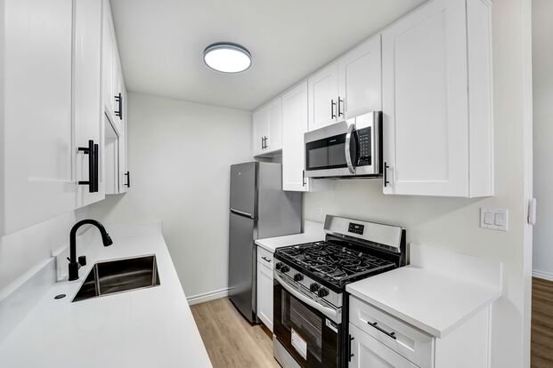 PRICED TO RENT NOW! Terrific lower 1 bedroom apartment in a beautifully maintained building just South of Wilshire Blvd in lovely Santa Monica. Features LVT flooring throughout, recessed lighting, a small patio area, fresh paint, and more! Spacious and convenient layout. Good closet space. One alley carport parking space included. Fridge included. Shared laundry room onsite. Approx. 600 sf.