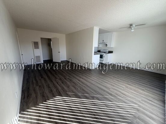 (RLNE3316815) Top floor unit with balcony. Parking and laundry onsite. Walk to shops & restaurants! - Bright and spacious top floor unit with large private balcony in 10-unit apartment complex located between Santa Monica Blvd. and Wilshire Blvd. New vinyl plank flooring throughout. Galley style kitchen with gas range (stove/oven) and (not warranted) refrigerator. Ceiling fan in dining room. One carport parking space. Laundry facilities on-site. Sorry, no pets. Landlord pays for water and trash.