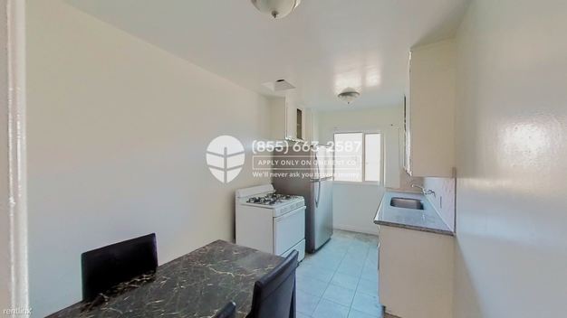 The bright and comfy interior features windows with blinds and premium hardwood/carpeted floor and tile floor at the bathroom. Benefit from a stunning kitchen that includes glossy granite countertops, fine cabinetry, and stainless steel appliances: refrigerator, oven/range, and dishwasher. Trash compactor and garbage disposal for convenient waste disposal. Built-in closets on its bedrooms. Vanity cabinet and enclosed shower/tub combo furnished its bathroom. An in-unit washer and dryer are available. It has central heating for climate control. The exterior has a backyard that tenant must maintain and a communal laundry. It has 2 parking spots off the street.