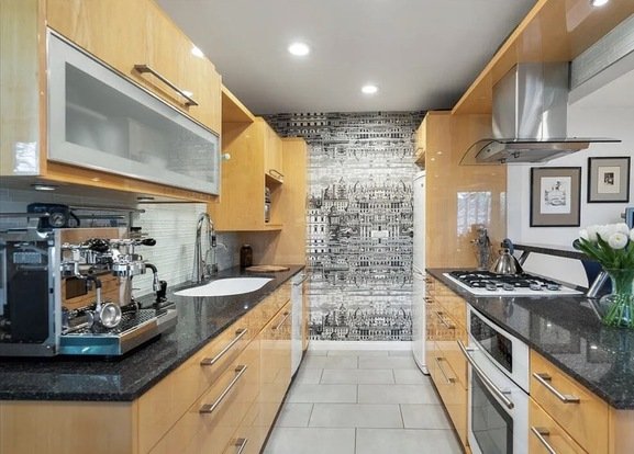 Additional modern upgrades include GFCI outlets with duplex USB ports, electronic one-way blinds by The Shade Co., California Deluxe double-pane windows and sliding doors, and lever-style doors throughout. A stackable luxury-brand Miele washer and dryer is also included.