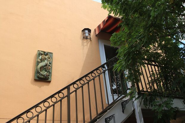 In a Mediterranean Revival home, light and airy, one bedroom above separate garage with bath and full kitchen. Fully furnished. wooden floors, with area rugs, and large walk in closet. Washer and dryer. Full wifi, internet, cable TV. New Orleans style balcony with access by 2 glass doors.