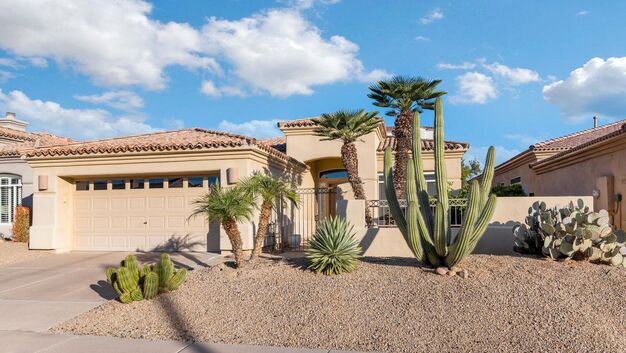 THIS IS A FURNISHED RENTAL THAT IS AVAILABLE SEASONALLY, LONG TERM PRICING, PLEASE CALL FOR BLENDED RATE!!! (Jan - Mar $6,995) (Apr, Oct - Dec $3,995) (May - Sep $3,495)!! Discover the epitome of luxury in North Scottsdale's exclusive gated Crown Point enclave within Grayhawk. This elegant residence boasts a thoughtful split floor plan, soaring high ceilings, and expansive picture windows that flood the home with natural light. At the heart of the home is a stunning kitchen, complete with a seamlessly integrated refrigerator, smooth cooktop, built-in wall oven, generous pantry, and a convenient eat-in bar seating three—perfect for casual gatherings. The inviting family room features a beautiful fireplace, plantation shutters, recessed lighting. The spacious master suite offers a private patio exit, oversized walk-in closet, and luxurious jetted tub for ultimate relaxation. Step outside to a charming, desert yard with a covered patio for al fresco dining, plus a large gated flagstone courtyard entry that welcomes you home. Residents enjoy access to the community pool and spa, all in a highly sought-after location near TPC Scottsdale golf, Kierland Commons shopping and dining, easy Valley freeway access, and the best of North Scottsdale living. Perfect for a sophisticated, low-maintenance lifestyle!