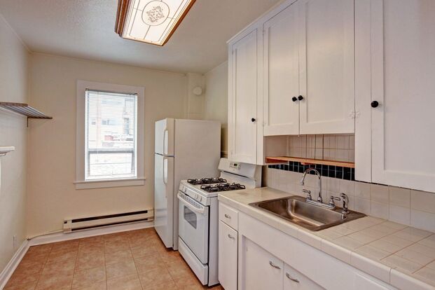 Featuring TALL CEILINGS, two bedrooms, one bathroom, and ample living space, this apartment is perfect for anyone looking for a comfortable and convenient home in one of Seattle's most sought-after neighborhoods. The kitchen includes modern appliances and plenty of cabinet space, while the bathroom features a new vanity and fixtures.