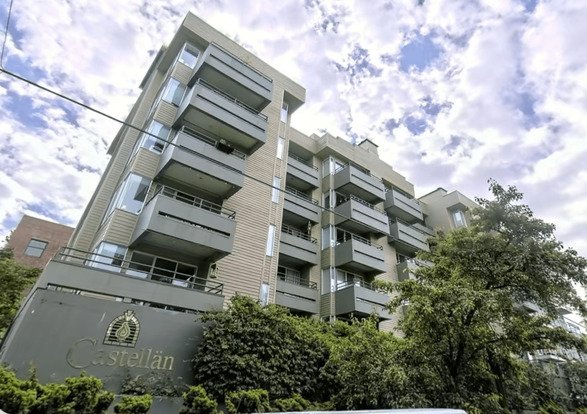 Castellan Apartments #106 is a stunning 2-bedroom, 2-bath in a quiet residential area of Capitol Hill, just a few blocks from Broadway. This fully renovated LARGE elevated first floor unit features Pergo hardwood flooring and carpeted bedrooms, stainless steel appliances, and a full-size chef's kitchen with a dishwasher and microwave! The master suite boasts a large wrap-around balcony and ensuite bathroom, while the living area comes complete with a wood-burning fireplace, corner windows, and additional balcony. This apartment is perfect for entertaining or simply relaxing in style! Enjoy the convenience of having your own washer/dryer in unit, reserved garage parking, EV charging available, and an elevator for easy access. Plus, we have private storage units on every floor, just outside your door if needed. Don't miss out on the opportunity to call The Castellan your new home!
