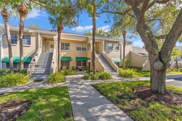 Call Cherie Kelly 727-451-7780- Enter into this move-in-ready, ground-floor gem nestled in the heart of the pet friendly, 42 unit, all-ages Bardmoor golf community. The location is incredibly conveinent, with shopping, restaurants and services only half a mile away. This home boasts generously sized bedrooms, including a primary suite with an ensuite bathroom dual closets and a full guest bath with dual sinks, ensuring comfort and privacy for all. Imagine cozy evenings by the stunning wood-burning fireplace in the spacious living room, perfect for creating lasting memories. The kitchen is a chef's delight, featuring stainless steel appliances (new in 2019) and elegant granite countertops. Plus, the built-in desk with a granite top offers a stylish and functional workspace with ample storage. The dining room has been thoughtfully extended by enclosing a former sunroom, providing an expansive area for entertaining or indulging in your favorite hobbies. Don't miss the extra closet behind the fireplaceideal for additional storage! Enjoy the views of the well maintained green spaces with plantation blinds at the front and wood blinds at the back, complemented by all-bamboo floors throughout the main living spaces and bedrooms. Convenience is key with in-unit laundry and excellent views of the community green space. Just seconds away, you'll find a beautiful pool and hot tub, perfect for relaxation .