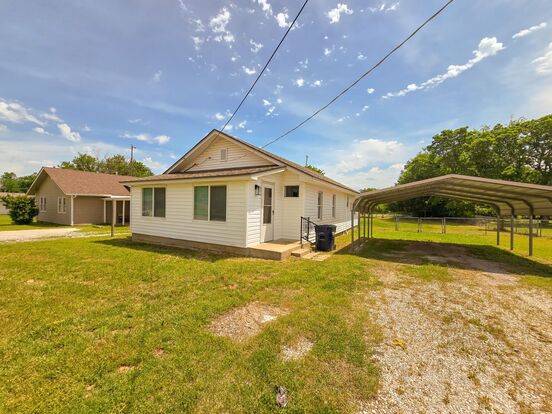 This charming 3-bedroom, 1-bathroom home in Shawnee, OK, has been thoughtfully renovated with vinyl flooring, new windows, fresh paint, and more. It offers a spacious and open living area perfect for family gatherings. The large kitchen is a highlight, featuring sleek quartz countertops, new cabinets, and modern stainless steel appliances, including a refrigerator and gas range. Convenient washer and dryer connections are located within the kitchen area. French doors open to a large, fenced backyard, providing a safe and private space for outdoor activities. Additional features include a storage building and a two-car carport for covered parking. Situated in a great location, this home combines comfort and convenience, making it an ideal choice for families or individuals seeking a welcoming living space. Tenants are responsible for utilities and lawn care. Leases are for 12 months (1 year). No Smoking! Application fee is $50 per applicant and all applicants over 18 must complete an application. Security Deposit starts at an amount equal to 1 month's rent.