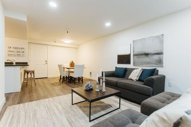 Desirable Ballinger/Shoreline Neighborhood - Beautiful One Bedroom with Designer Finishes and Free Reserved Parking!! - The Ballinger Apartment Homes - Beautifully Remodeled One Bedroom/One Bath with Washer/Dryer, open kitchen, spacious floor plan, boasts luxury with newer flooring, newer designer lighting, and newer kitchen high-end finishes with quartz countertops.