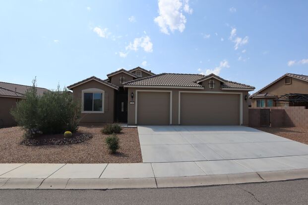Welcome to this stunning 3 bedroom, 2 bathroom home located in Sierra Vista, AZ. This newer site-built home features a spacious 3 car garage, perfect for all your storage needs. The kitchen boasts a gas range, built-in microwave, dishwasher, and all stainless steel appliances. Enjoy meals at the kitchen island or in the breakfast nook. The primary bathroom includes dual sinks, a separate shower, an oversized garden tub, and even a bidet. With a split floor plan, and laundry room with a washer and dryer, this home has everything you need. Relax on the covered patio in the all gravel backyard surrounded by a block wall for privacy. Don't miss out on this amazing property - visit www.teambradleyproperties.com for more information.
