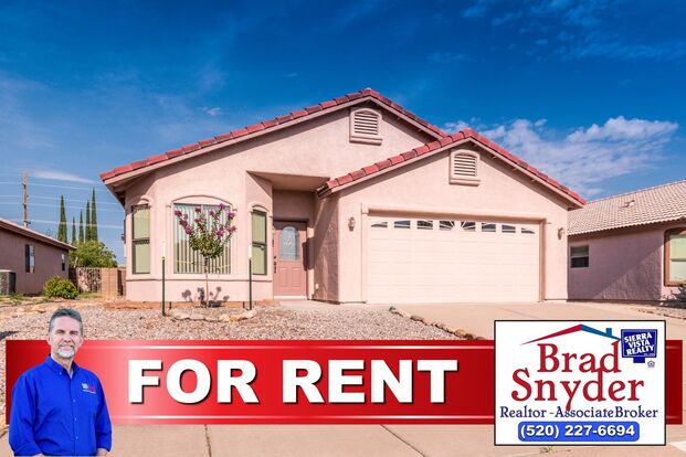 Available NOW... This charming 3-bedroom, 2-bathroom home offers a perfect blend of comfort. Featuring a 2 Car Garage and Central A/C, this property is designed for modern living. Inside, enjoy the kitchen complete with upgraded appliances, and Breakfast Nook. The home also boasts a Large Open Great Room with a Gas Fireplace and Dining Area, making it perfect for gatherings and everyday meals. The primary bedroom includes direct access to the covered patio, a walk-in closet, and an en-suite bathroom with Dual Sinks and a Walk-In Shower. Step outside to the fenced yard with a covered patio, ideal for relaxing or entertaining while enjoying the Arizona weather. Home also features a Storage Shed. Located just minutes from Fort Huachuca, shopping, and restaurants.