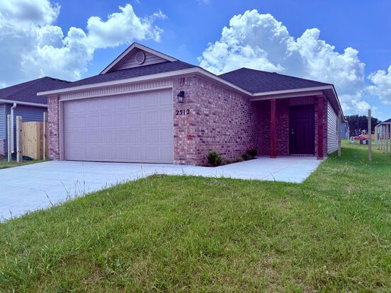 New Construction in Siloam Springs. Open floor plan with wood style flooring through main living area and carpet in the bedrooms. Kitchen includes refrigerator, over range microwave, dishwasher and pantry. Washer and dryer included. Primary includes large walk in closet.