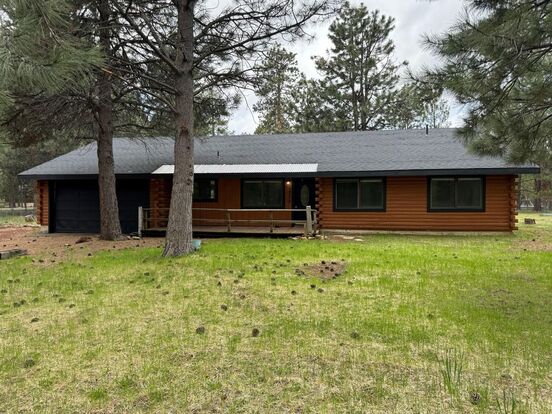 Spacious ranch style log home on almost an acre. 3-bedroom, 2 bathrooms, 1887sqft. Updated laminate floors and carpet throughout, updated hall bathroom, master bath updates, fresh paint, updated lighting and door hardware, stainless appliances. Two oversized living spaces for plenty of entertainment or multigenerational living. Kitchen has updated lower cabinets and hardware, new sink and faucet, and newer appliances.