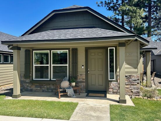 Come see this charming 2-bedroom, 1-bathroom bungalow located in beautiful Sisters, OR. This newly developed home features an open floor plan with vaulted ceilings, a spacious 2-car garage, and crisply landscaped yard. Enjoy the perks of comfort with a breakfast bar, central air conditioning, and a washer/dryer. Residents will have access to a community park, playground, sport court, and tennis courts, perfect for outdoor activities. With easy town access and proximity to Deschutes National Forest, this home offers the perfect blend of nature and convenience. Don't miss out on the opportunity to make this house your new home!