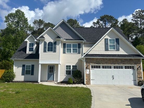 Beautiful 3 Bedroom, 2.5 bathroom with finished bonus room located in the Bridgeport Community in Sneads Ferry. The floor plan has the Master bedroom on the 1st level with the additional two bedrooms, full bathroom and bonus room on the second level. Large entryway with a spare office/den space on the right as you enter. As you pass the stairs to the second level, you are in the open living area encompassing the dining and kitchen as well. There is a fully fenced back yard. The community has a pool as well for residents. Located close to the area beaches and the beach access of N Topsail Beach, to the nearest grocery store, to the MARSOC Stone Bay gate, and to the back gate of Camp Lejeune. This home is situated in-between Wilmington and Jacksonville.