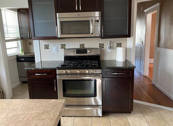Big roomy 5 rooms in addition to Laundry Room in unit and two enclosed porches front & back. Very good of closet space and storage. Bright and Sunny and very clean. Kitchen has lots of cabinets and granite counters with a moveable breakfast Island.
