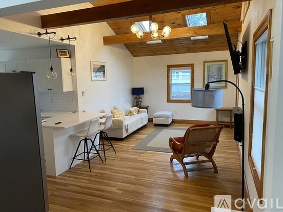 The 1100 sf+- apartment has a spilt level design with the first-floor street level entrance entering into a spacious, high ceiling open-room concept connecting the living room with a modern kitchen. Kitchen includes stone countertops, stainless steel appliances, dishwasher, and garbage disposal. From the kitchen there is access to an outside deck that overlooks the backyard with a wooded area of maple, oak, and pine trees active with squirrels and birds. Additionally on the first-floor level is a full bathroom and a bedroom with a queen bed. Radiant heat floor throughout first floor level. Down five steps connects to the lower level with a full bathroom, a bedroom and separate office room. Washer and dryer is located in closet adjacent to bedroom on lower level.