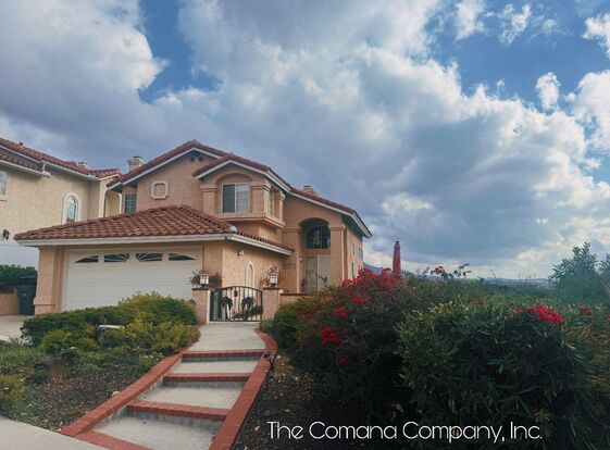 AVAILABLE NOW!! Gorgeous 3 Bedrooms, 3 Full Bathrooms, Two Story Home With A Breathtaking View!! Available Now!! High Vaulted Ceilings, 2 Living Rooms, Dining Room, Fireplace in Living Room, Sliding Doors in Living Room & Dining Room Areas, Large Closet in Hallway, Stainless Steel Appliances in Kitchen, Beautiful Patio and Side Patio with Breathtaking Sunrise and Sunsets, Master Bedroom has a Balcony, Fireplace, Full Bathroom with His and Her Sinks and Large Walk-In Closet. Attached 2 Car Garage with plenty of Storage Cabinets and a Washer and Dryer. Gardener maintains the property monthly. This home is in culdesac and part of an HOA community. It is also a corner home overlooking the city and far beyond. Must See!!