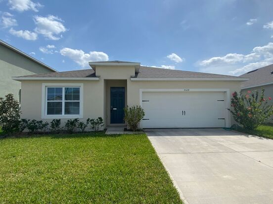 Welcome home to 5524 Winona Drive. Well appointed 4 bedroom, 2 bath, gently lived in, lovingly cared for newer home and ready for immediate move in. Water views from living areas and kitchen, primary bedroom offers water views, walk in closet, double vanity. Laundry room with washer and dryer included. 2 car garage, neutral color palatte, walking trail, playground, community pool just 10 doors down. This home could be yours just in time for Spring Break or to enjoy Florida's long hot summer days! Lawn Care Included!