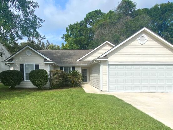 Lovely 3 bedroom 2 bath home in quiet well-established neighborhood with community amenities. This house has 2 stall garage with large fenced private backyard and is located in Sugarmill’s McIntosh Landing in St. Marys. Large open living area with fireplace open to dining room, big kitchen with expanded eat in area, and tile flooring. Indoor laundry room. Neutral Grey paint and Luxury vinyl wood-like plank floors in Living areas. Bedrooms are carpeted. Approx 1,566 sqft. Located close to base. Subdivision includes access to community amenities available to including Olympic size swimming pool, playground, picnic areas, 2 tennis courts, over 8 miles of running/walking paths and more. Moments to Naval Base, and expressway to I-95. Close by dining, shopping, schools and St. Mary's waterfront district. No pets please.