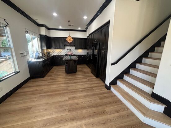 The heart of this home is the remodeled kitchen, a chef's dream with a convenient kitchen island, elegant granite countertops, and high-quality stainless steel appliances. The kitchen thoughtfully opens to the family room, creating a seamless space for entertaining and everyday living. (Please note: A refrigerator is included but not warranted). For added convenience, there is a full bed and bath downstairs. The primary suite includes a spacious walk-in closet, and other bedrooms feature practical mirrored closet doors and built-ins. Enjoy an in-unit laundry area. Stay perfectly comfortable year-round with efficient Central Air & Heat.