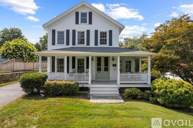 Reserve your Summer 2026 accommodation at the notable Farmhouse located in Downtown Mystic, available for month-long stays from June through September, or available on a weekly basis at $4,500 per week. This beautifully renovated 1876 Farmhouse in pristine condition includes everything you will need to enjoy a comfortable and memorable vacation experience. Located within walking distance to Downtown Mystic, the Seaport, restaurants, shops, and other local attractions, this property provides exceptional convenience. Guests are invited to enjoy a spacious wrap-around covered porch, thoughtfully appointed with rocking chairs, porch swing, as well as table and chairs. The Farmhouse features exceptional outdoor amenities, including 0.32 acres of landscaped grounds, stone walls, an outdoor fireplace accompanied by Adirondack chairs, and outdoor deck with seating, a stone patio with dining table, propane gas grill perfect for al fresco dining. Step inside to a delightful and welcoming interior that blends traditional charm with modern amenities such as central air conditioning. The 1st floor includes a fully equipped kitchen, dining room with a large farm table, an enclosed three-season porch, a living room with a flat-screen TV, and full bath with soaking tub. On the 2nd floor, there are three bedrooms: a primary bedroom with a plush king-size bed and flat-screen TV, and two additional bedrooms with queen-size beds, full bath and family room.