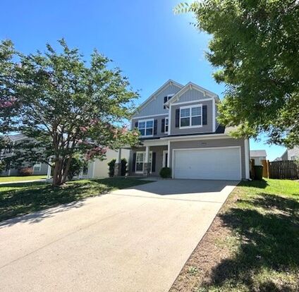 **$250.00 OFF THE 1ST FULL MONTH-**Two-story- 3bed/2.5 bath vinyl home in Hunters Crossing. Double garage with remotes, fenced back yard with patio. Covered front porch. Open concept. Kitchen has a large bar perfect for entertaining. Granite Counter tops, black appliances, pantry, lots of cabinets for storage space. Hardwood floors through out the downstairs. Master bedroom has Tray ceiling with lots of natural light. Master bathroom has separate walk-in glass shower, large soaker tub, walk-in closet. Laundry room is located upstairs with a door that leads to a storage space over the garage. 2 spare bedrooms, lots of natural light, good size walk in closet on second bedroom with window in it. All electric. Alarm system can be activated at tenants expense.