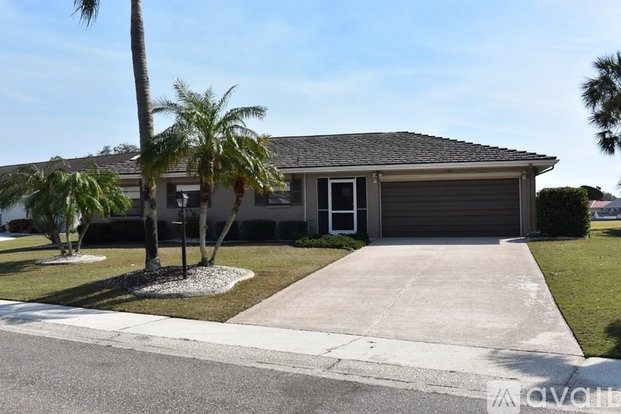 Live like you're on vacation in this highly active senior 55+ community. This home is UNfurnished for annual rental. 2 bedroom, 2 bath with a spacious Florida room and screened lanai with view of pond. Plus an additional room that can be used as den/office. Tile floors through-out except bedrooms and den. Granite counters in kitchen and baths. 2 car garage with some storage/work space and a motorized screen on garage door in case you want to tinker in garage and not be seen. Sun City Center offers many amenities such as indoor & outdoor pools, pickle ball, tennis, arts/crafts, golf courses & many more activities. Conveniently located to I75, shopping, medical facilities & more. Rent includes lawn care and lawn irrigation saving you money on water bill plus access to community amenties. NO SMOKING. Pets are allowed.