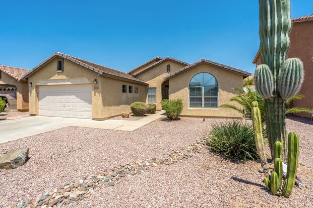3 bedrooms, 2 baths + den. Great Room floorplan. Built in shelving, tall ceilings and neutral colors. The kitchen is open with loads of cabinet and counter space, a kitchen island with raised top, recessed lighting and a great dining area. Light and bright. Very nice master with en suite bath that has dual vanities and a spacious walk in closet. Outside you will find a fully block fenced yard with plenty of space and a wonderful covered patio area that's perfect for Arizona living. Low maintenance front and backyards. ***Ask us about our Security Deposit Alternative Program!*** Apply at Patpm.com. Tenants will pay $5.00 monthly admin fee and $24.00 monthly HVAC Preventative Maintenance fee. Total move-in cost equals 1 month's rent, 1 month's security deposit (or alternative),$500.00 cleaning deposit and $300.00 carpet cleaning fee.
