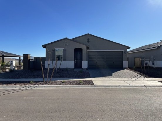 The perfect rental! Gourmet kitchen with stainless steel appliances and quartz counters, large center island, staggered espresso cabinets, pantry, and farmhouse sink with upgraded fixtures! Flooring is wood-look tile and carpeted bedrooms. Kitchen overlooks large family room. All bedrooms are good sized with great closet space; master has dual vanity and huge walk-in closet! Covered patio and low maintenance landscaping out back with view fence of common area, no one behind you! Home sits on a corner with pocket park next door. Desert Oasis community offers pools, walking and biking trails, parks, schools, mountain views with entertainment and shopping just minutes away! Call us today! --- DEPOSITS & FEES: Refundable security deposit equal to one-month rent, $300 per pet half refundable-half nonrefundable (Pets with approval), $400 non-refundable cleaning fee, $150.00 Lease set up fee, visit valentineteam .com to apply.