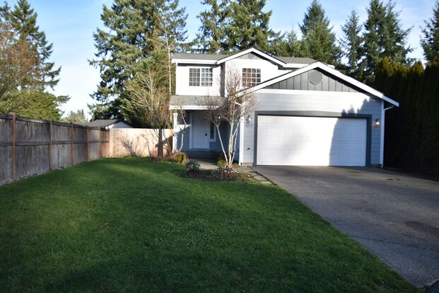 Welcome to this beautiful 3 bedroom, 2.5 bath home located on a peaceful cul-de-sac in. This charming property offers a convenient and desirable location, perfect for those seeking a peaceful retreat. Big open kitchen with new appliances including Stove, refrigerator, dishwasher and built in microwave. The primary bedroom offers an en suite 5 piece bath and walk in closet. The house features an attached 2 car attached garage, providing ample space for parking and storage. The fenced yard offers privacy and security, creating a safe space for outdoor activities and relaxation. Great location near JBLM shopping and transportation.