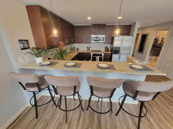 Spacious 1,068 sq ft, 1-bedroom condo with flexible office/guest space, central air, sound dampening windows & doors, city view & private balcony. *Two* parking spaces with a new, exclusive use, EV charger, new washer/dryer, primary closet w/custom built-ins, fresh paint, keypad entry, remote blinds. Easy access to I-5. **Only pay for Electricity. Water, sewer, garbage and natural gas is included in the rent.** The Esplanade offers secure entry, luxury gathering areas, community lounge, game room, fitness center, secure parking, & outdoor spaces. Credit Score Minimum = 685. Gross Income minimum = 3x Rent Amount. Small to Medium dog considered.