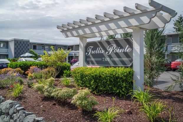 Welcome boutique-style living at Trellis Pointe Apartments in Tacoma's desirable West End. Trellis Pointe's one- and two-bedroom apartment homes are ideal for convenience, affordability, and charm. Trellis Pointe Apartment community encourages easy access to Tacoma Community College, the University of Puget Sound, and Geiger Montessori School for all your studies; the nearby 6th Avenue District provides a vast array of shops, restaurants, and entertainment. True to its namesake, this apartment community has a garden-style setting with plush grounds and minutes from Titlow Beach and Community Lodge for added nature and exercise. Trellis Pointe Apartments offers an easy commute on Highway 16 and I-5 to Cheney Stadium, the Narrows Bridge, Point Defiance Park, and employment in Tacoma, Gig Harbor, and University Place. These newly renovated apartments exude comfort and style with appealing colors and finishes, built-in washers and dryers, private decks, and community areas, among desirable amenities. Branch out to enjoy all the comfort and convenience of Trellis Pointe Apartments.