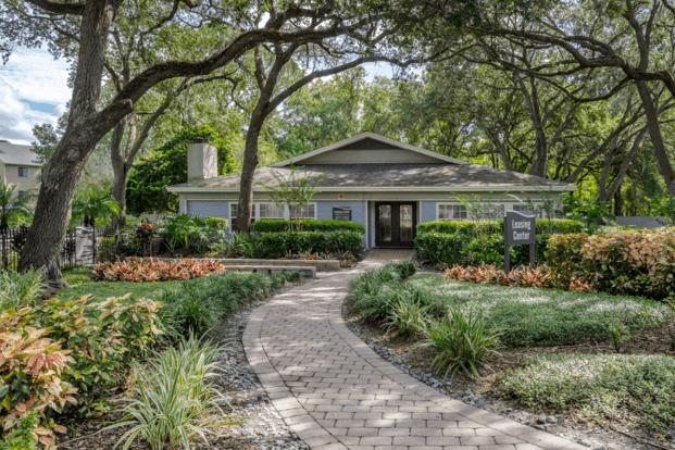 Experience culinary excellence in a fully furnished kitchen featuring elegant granite-style countertops, modern stainless steel appliances, corner windows, and a charming breakfast bar. Enjoy the beauty of sparkling lake views or serene wooded landscapes from the cozy haven of your screened-in patio or balcony. The sophisticated hardwood-style flooring, high vaulted ceilings, expansive oversized windows, spacious walk-in closets, and integrated smart home technology combine to offer you a comfortable lifestyle in a prime location at the heart of the region's finest attractions. Conclude a long day by strolling along our picturesque wooded trails or witnessing the sun's graceful descent behind our catch-and-release lake. Bask in the sunlight by the side of our dual tropical swimming pools, complete with sundeck seating and a charming gazebo area. Elevate your fitness aspirations at our round-the-clock fitness studio, furnished with top-tier strength training and cardio machines, or opt