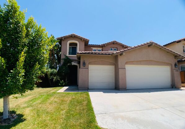 This stunning 5 bedroom, 3 bathroom home in Temecula is now available for lease! Enter inside to an open concept layout featuring a formal living room that seamlessly flows into a welcoming family room, perfect for entertaining. Enjoy elegant plantation shutters, a built-in media niche, and ample natural light throughout. The gourmet kitchen is a chef’s dream, complete with granite countertops, stainless steel appliances, a 5 burner cooktop, built-in oven, walk-in pantry, and even a separate vegetable sink. You'll also find a sunny breakfast nook and a formal dining area for added versatility. Upstairs, you’ll find a spacious bonus room/bedroom and a luxurious primary suite with panoramic views of the hills and city lights. One bedroom and full bathroom are conveniently located on the main level, ideal for guests or a home office. Located in the highly sought-after Morgan Hill community, residents enjoy access to a spectacular clubhouse featuring a pool, spa, gym, sports courts, and more. Don’t miss your chance to make this beautiful home yours, schedule a viewing today!