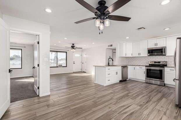 Fantastic rental opportunity featuring this beautifully maintained 4-bedroom home tucked away on a peaceful cul-de-sac, ideally located just 12 minutes from ASU and 12 minutes from Old Town Scottsdale. Inside, you’ll find an airy open layout complemented by a soothing color palette, subtle recessed lighting, and wood-look flooring that adds a timeless touch throughout. The immaculate kitchen showcases granite countertops, white shaker cabinetry with crown molding, a stylish tile backsplash, stainless steel appliances, a walk-in pantry, and a peninsula with a breakfast bar perfect for casual dining. The spacious primary suite offers plush carpeting, direct backyard access, and a private ensuite bathroom. Step outside to a generous backyard featuring an open patio, convenient alley access, and plenty of room for entertaining or relaxing. This one checks all the boxes.