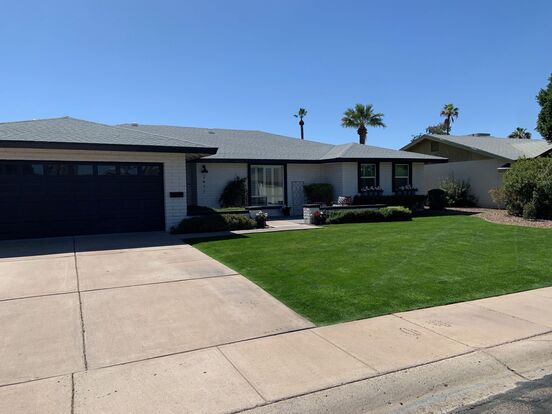 Welcome to this spacious 5-bedroom, 2-bathroom home in the heart of Tempe, AZ. This meticulously kept home offers a den, water softener, shutters, and granite counters in the gourmet kitchen. Enjoy the convenience of a 2-car garage. Step outside to your own private oasis with a heated pool and synthetic grass in the large backyard. With plenty of room to entertain and relax, this house is perfect for those looking for a comfortable and stylish living space. Don't miss out on the opportunity to make this house your home.
